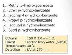 * 包含分離難度較高的苯甲酸脂類(parabens)構造異構體在內的超高速分離