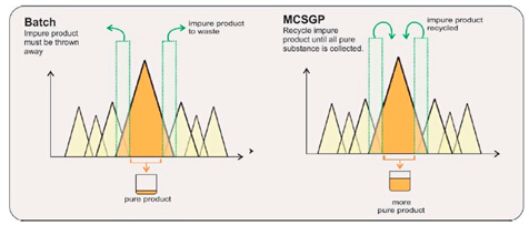 ? ? ?MCSGP工藝,可將含有不純組分的產(chǎn)品回收在一個封閉的環(huán)內,進行循環(huán)式的層析操作,從而最大限度地提取純產(chǎn)品,使得收率和純度二者兼得。