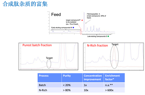 ? ? ??N-Rich工藝是微量物質的富集過程,比如將產(chǎn)品的相關雜質選擇性地富集在一個循環(huán)的層析過程中,待富集至目標量,再進行洗脫回收。該方法特別適用于分離與產(chǎn)品有關的雜質,如異構體和聚集體,并同時用于發(fā)現(xiàn)研究。