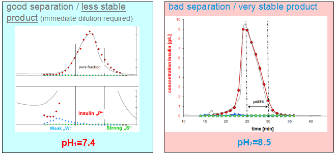 L.Aumann等采用MCSGP,在pH=8.5時(shí)將目標(biāo)產(chǎn)物與降解物的重疊部分進(jìn)行回收,不斷進(jìn)行提純,同時(shí)保證了產(chǎn)品純度和收率。