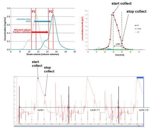 ? 通過MCSGP的子模塊M-Control,可有效克服由于溫度、柱效等因素造成的出峰時(shí)間遷移,實(shí)現(xiàn)智能收集,保證各cycle的工藝可控性和可重復(fù)性。