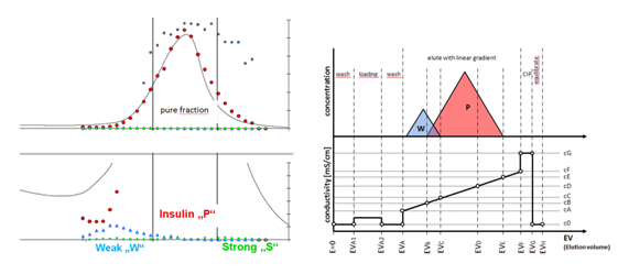 L.Aumann等通過Batch工藝,得出在胰島素精純時(shí)目標(biāo)產(chǎn)物與雜質(zhì)的分布特點(diǎn)。
