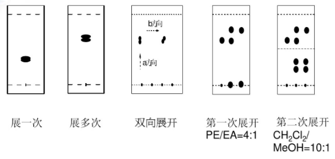 Note:1. Rf值在0.2左右的展開劑比例為沖洗劑的合適值。