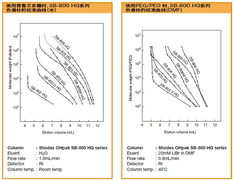 SB-802.5 HQ色譜柱是聚合物基質的水溶性SEC色譜柱,適用于各種分子量范圍的測定。溶劑可用DMF替換(除SB-802 HQ和SB-807 HQ以外),可分析極性聚合物。SB-804 HQ、SB-805 HQ可用于測定明膠的平均分子量。