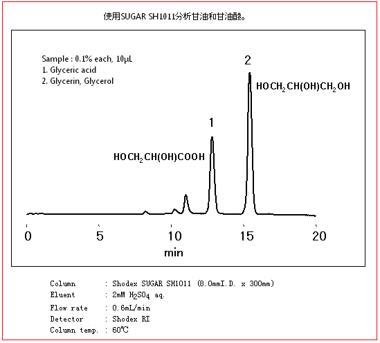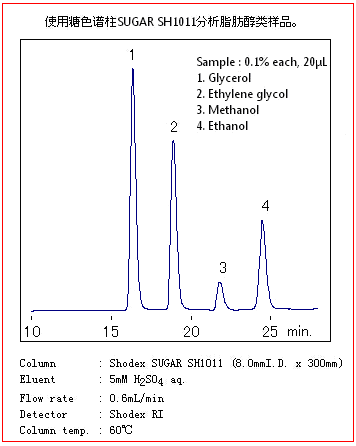 SUGAR SH1011色譜柱是以聚苯乙烯-二乙烯基苯為基質(zhì)的,是對(duì)糖和有機(jī)酸同時(shí)分析的色譜柱。中性糖用尺寸排阻原理進(jìn)行分離,有機(jī)酸是用離子排阻法進(jìn)行分離的。主要適用于糖醛酸和醛糖酸的分析。
