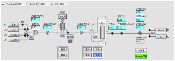 層析系統(tǒng)軟件符合新版GMP規(guī)范,采用圖形化界面、全自動操作,簡明扼要,任何操作及狀態(tài)均可實時顯示在主界面狀態(tài)欄中,自動化程度高。結合了大量的容錯性設計,貼合生產實際,降低了對研發(fā)人員的技能要求。