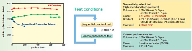 YMC-Actus具有高理論塔板數(shù)、高分離能的優(yōu)點。即使在壓力變化很大的苛刻條件下也不會引起該性能的降低。